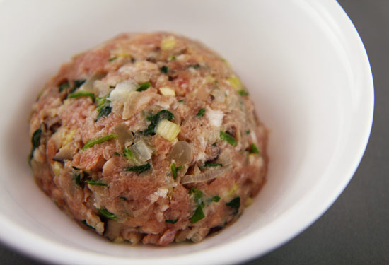 - In a large bowl, mix all ingredients (except for the Chiao Tzu skins) together.